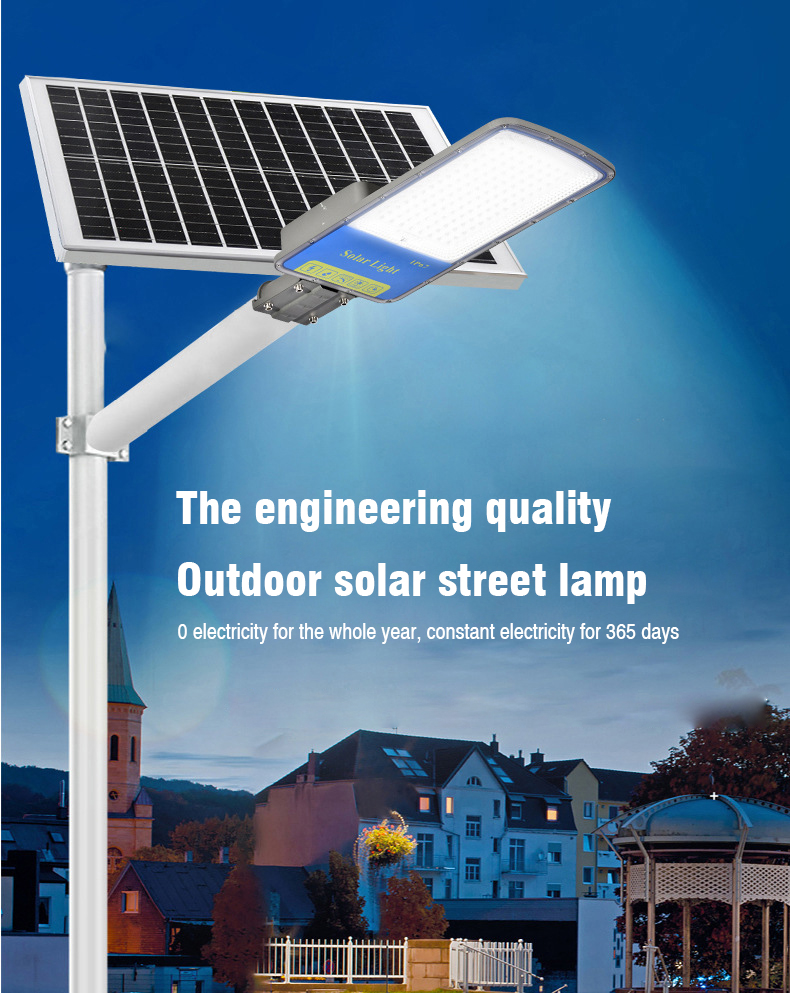 Product description: Product Name: Solar outdoor street lamp Material: Die-cast aluminum +PC Control mode: light control + time control + remote control Light source :LED Waterproof level :IP 65 Lighting ti